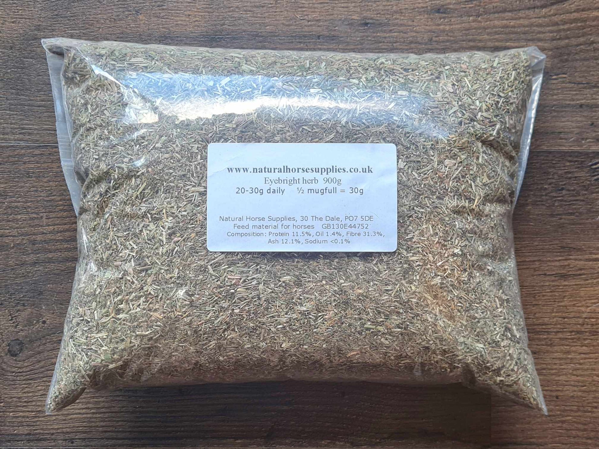 Eyebright is most commonly used for horses with persistent eye irritation (weeping, stinging, light sensitivity), but can also be used to calm sinus congestion and allergic reactions. Note that eye irritations can be symptoms of serious underlying conditions, such as uveitis and corneal ulcers, so you will want to discuss these issues with your veterinarian before using eyebright to treat them.