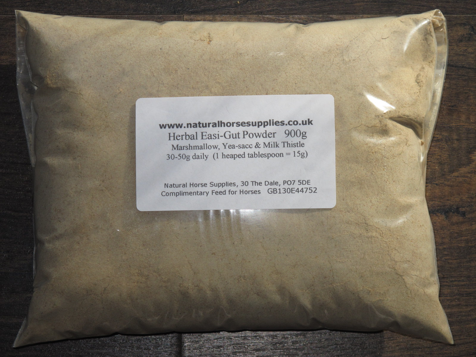 Marshmallow root powder is both high in mucilage and helps soothe any irritation. Yea-sacc promotes efficient hind-gut function and fibre digestion. Milk thistle seed powder supports the liver which can be under pressure in cases of digestive problems.