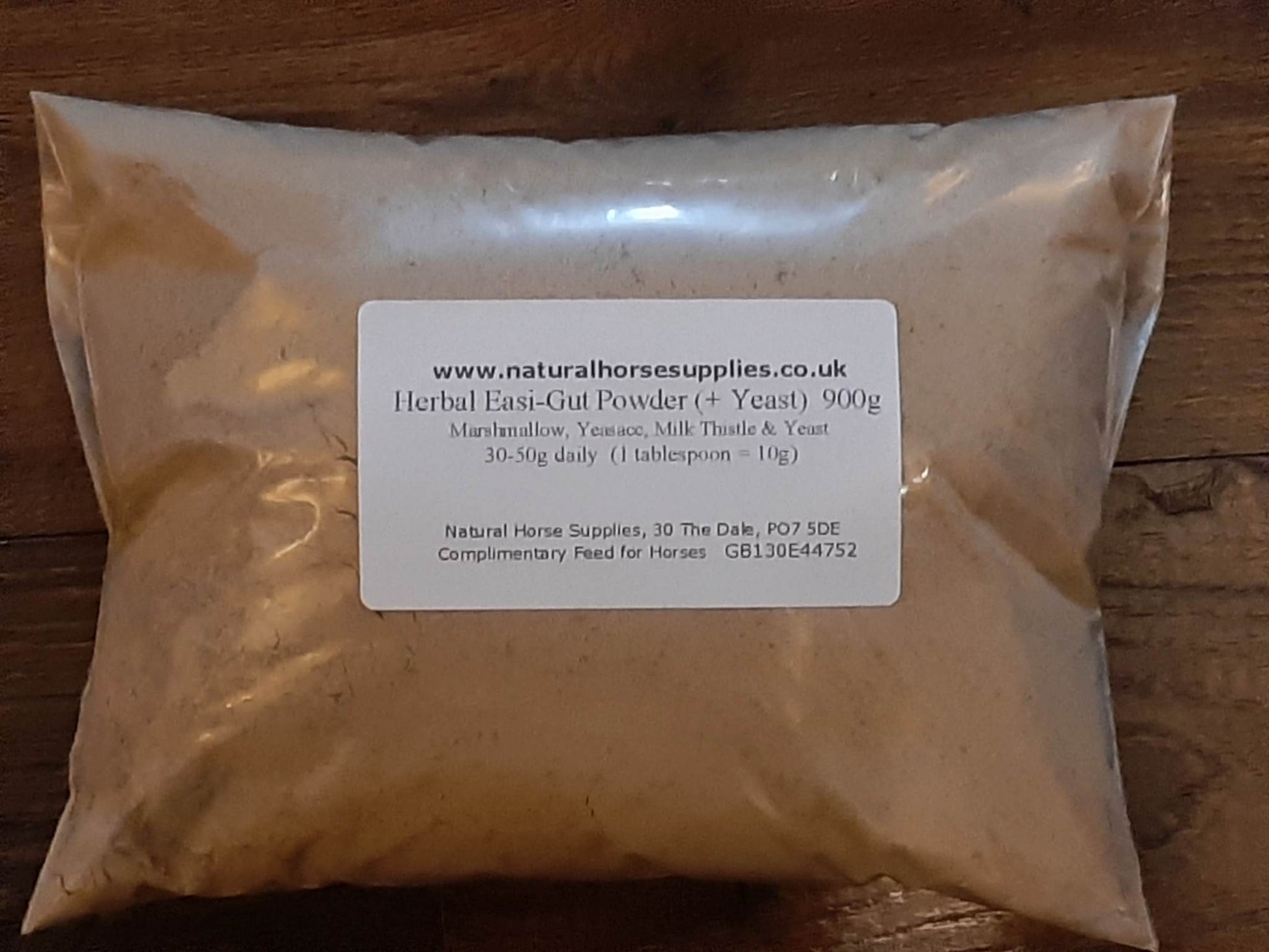 Marshmallow root powder is high in mucilage and helps soothe any irritation. Yea-sacc promotes efficient hind-gut function and fibre digestion. Milk thistle seed powder supports the liver which can be under pressure in cases of digestive problems.