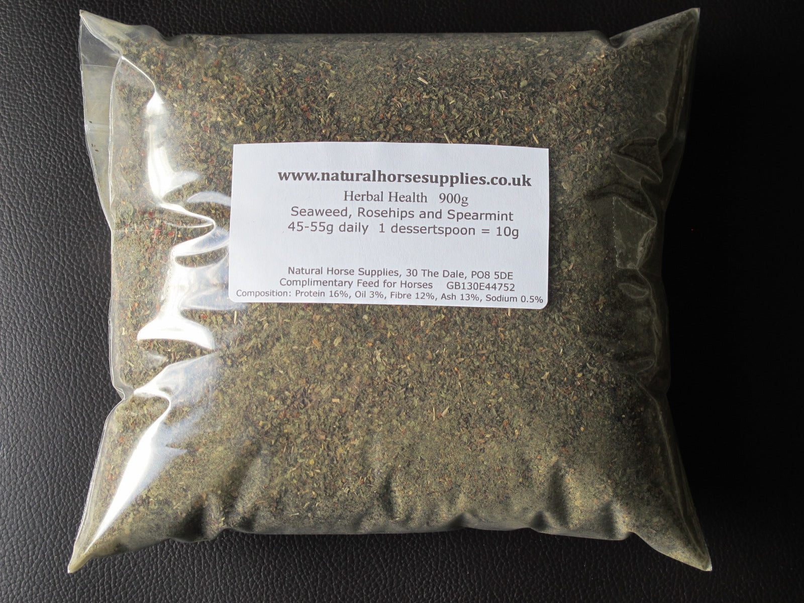 Feeding 50g daily, provides 25g seaweed, 15g rosehip and 10g spearmint