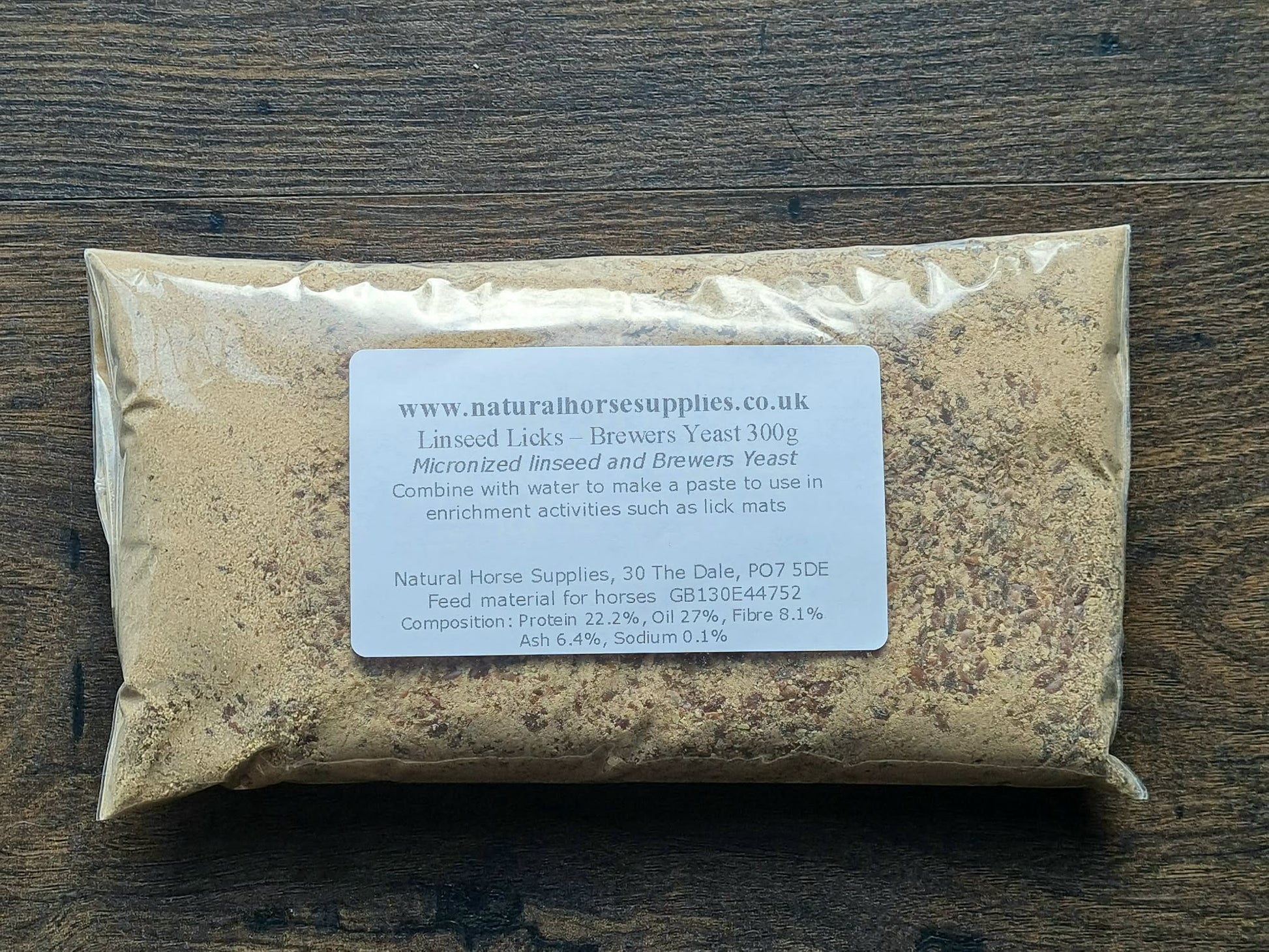Our Linseed Licks Yeast pack contains 225g of micronized linseed and 75g brewers yeast powder. Just mix with water to make a paste, 300ml of warm water makes a thick paste, more can be added to suit. Then apply to your chosen lick mat and place in your horse's feed bowl or directly on the floor.