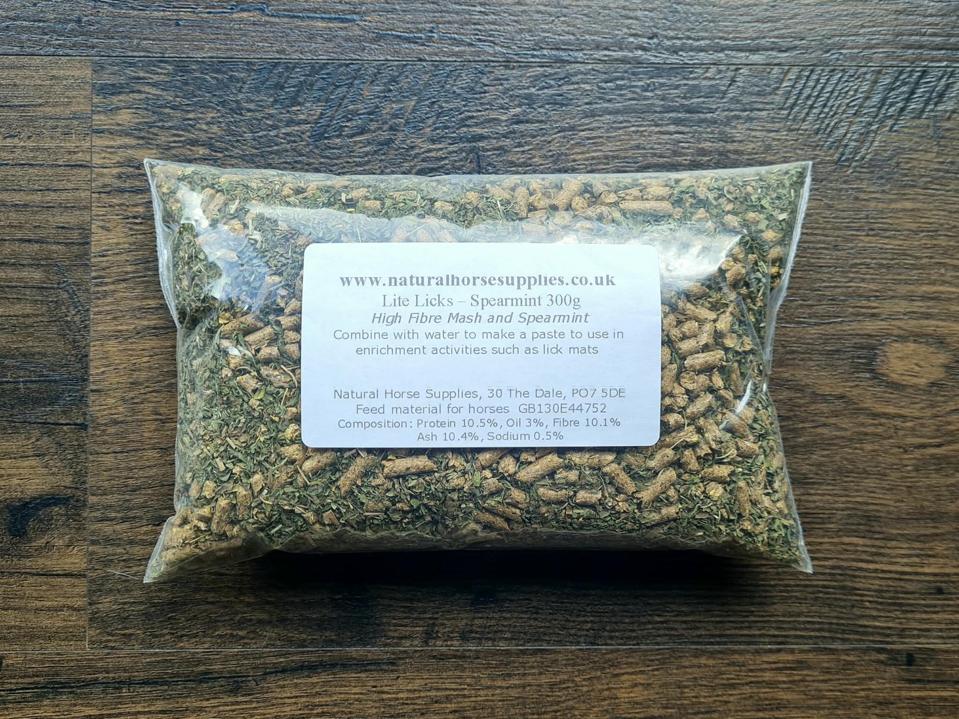 Our Lite Licks Spearmint pack contains 225g of high fibre mash pellets and 75g spearmint powder. Just mix with water to make a paste, 400ml of warm water added to 100g of the blend makes a thick paste, more can be added to suit. Then apply to your chosen lick mat and place in your horse's feed bowl or directly on the floor.